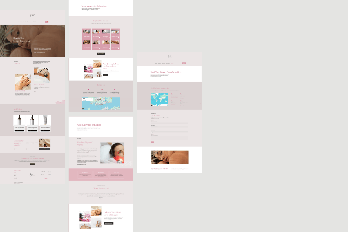 I utilized a clean, minimalist design with soft colour transitions to achieve the feeling of "organic luxury." The large, high-resolution product photography was integrated seamlessly into the service sections to gently guide visitors toward both booking and product purchase, maintaining a fluid, clutter-free experience.
